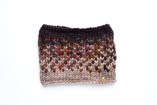 Sold out: check back soonGray and Brown Multi Color Merino Wool Fair Isle Hand Knit Cowl