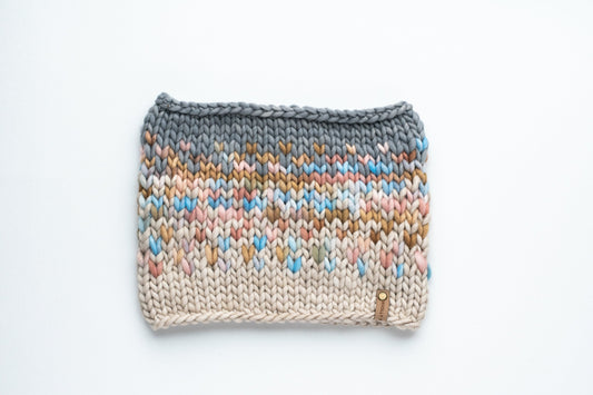 Gray and Multicolor Merino Wool Fair Isle Hand Knit Cowl