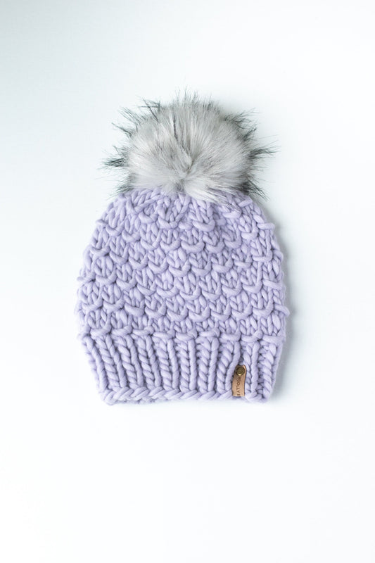 Lavender Peruvian Wool Knit Hat with Faux Fur Pom Pom