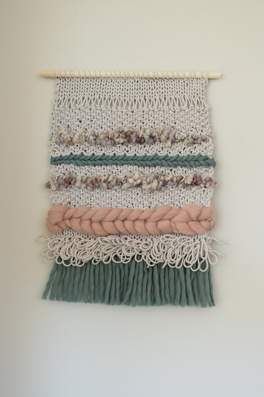 KNITTING + WEAVING PATTERN: Iona Wall Hanging, Easy Boho Knit and Woven Wall Hanging Pattern, Home Decor Knitting Pattern Weaving Pattern