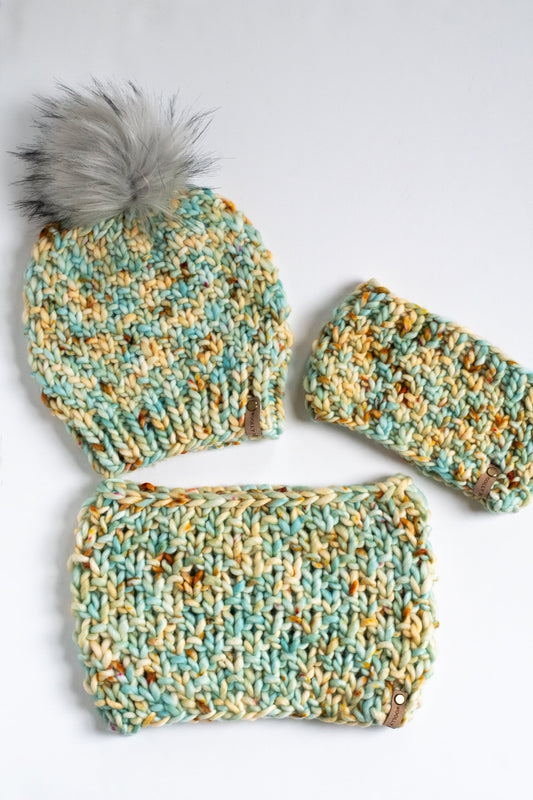 KNITTING PATTERN: Sandbar Pattern Set; Hat, Cowl, and Headband Patterns