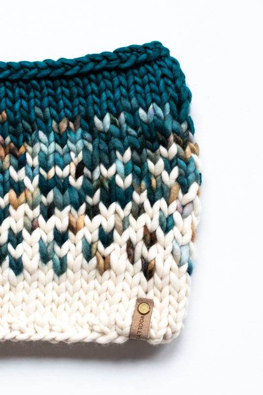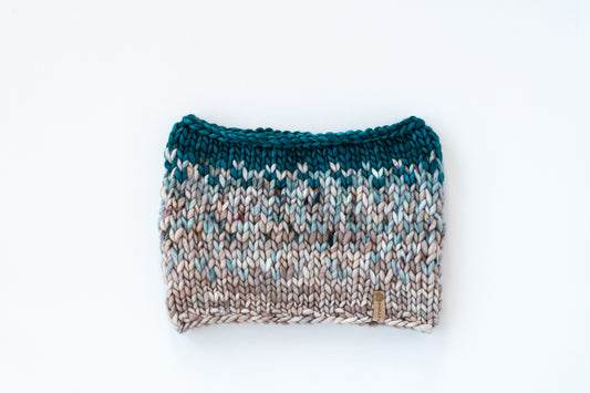 Sold out: check back soonGreen and Teal Merino Wool Fair Isle Hand Knit Cowl