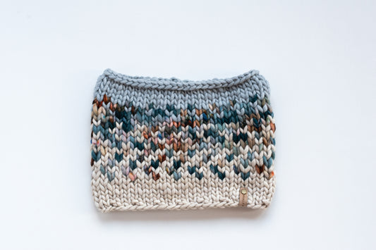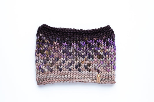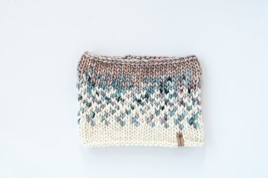 Gray and Brown Multicolor Merino Wool Fair Isle Hand Knit Cowl