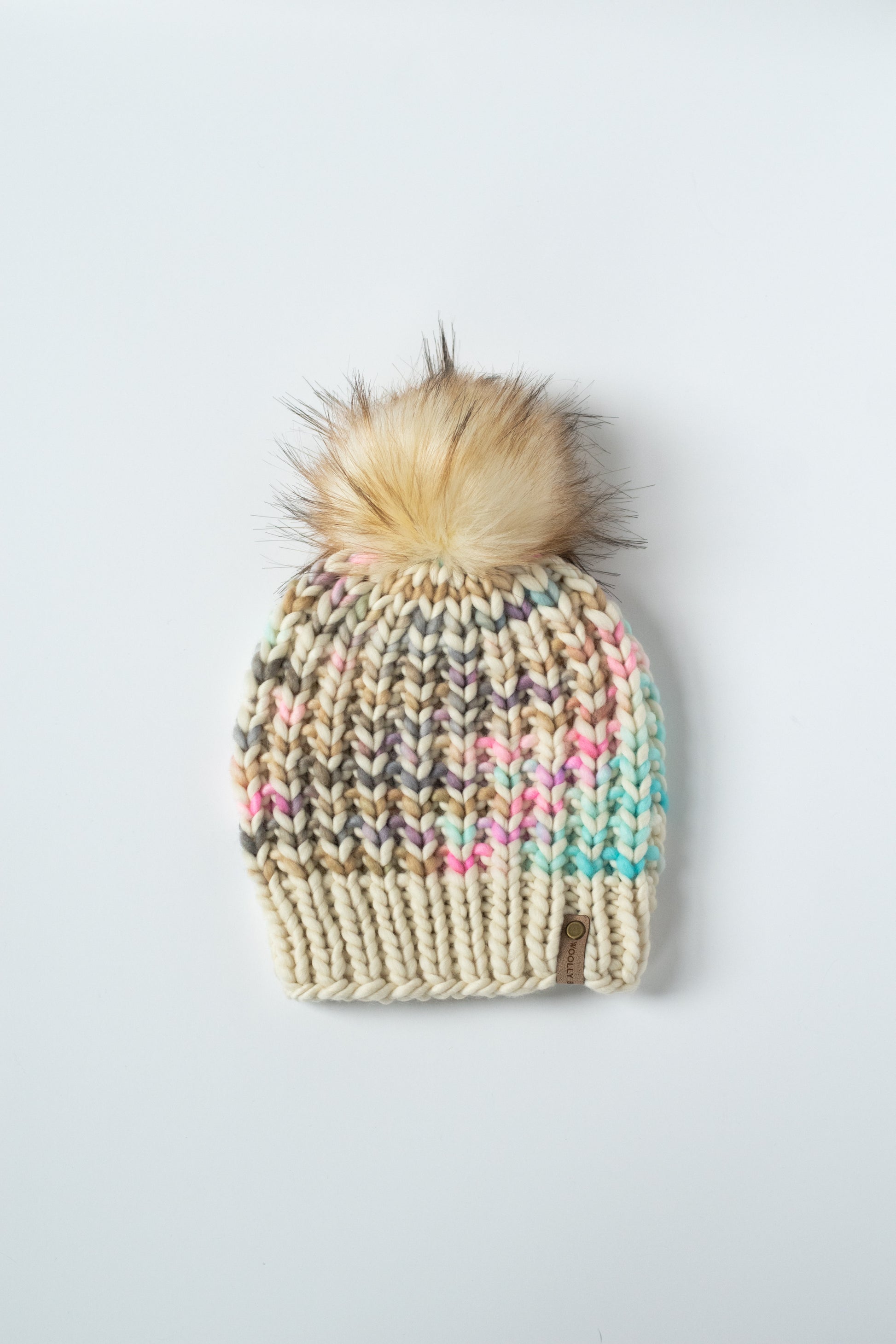 - Topped with a faux fur pom pom of your choice (select option at checkout). Pom poms are handmade by me using cruelty-free faux fur fabric.