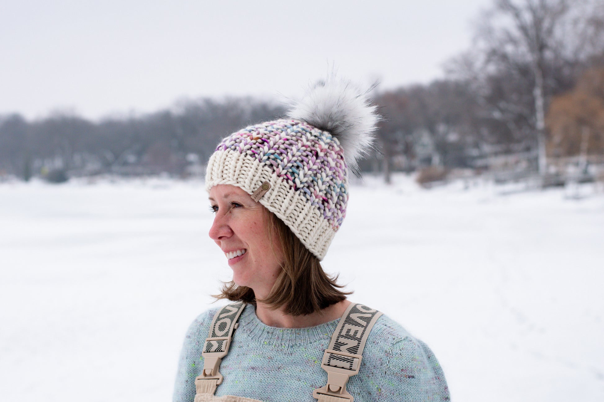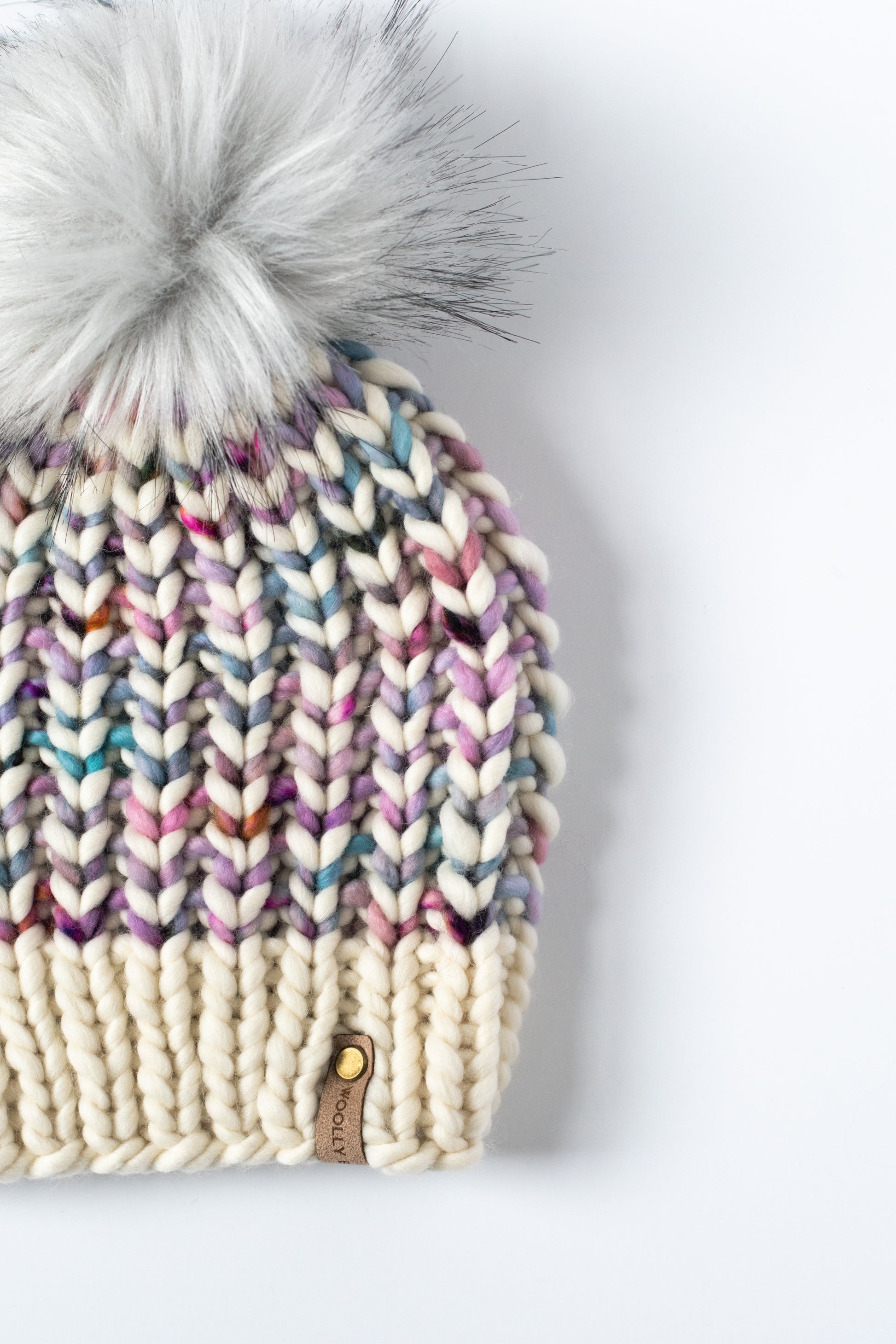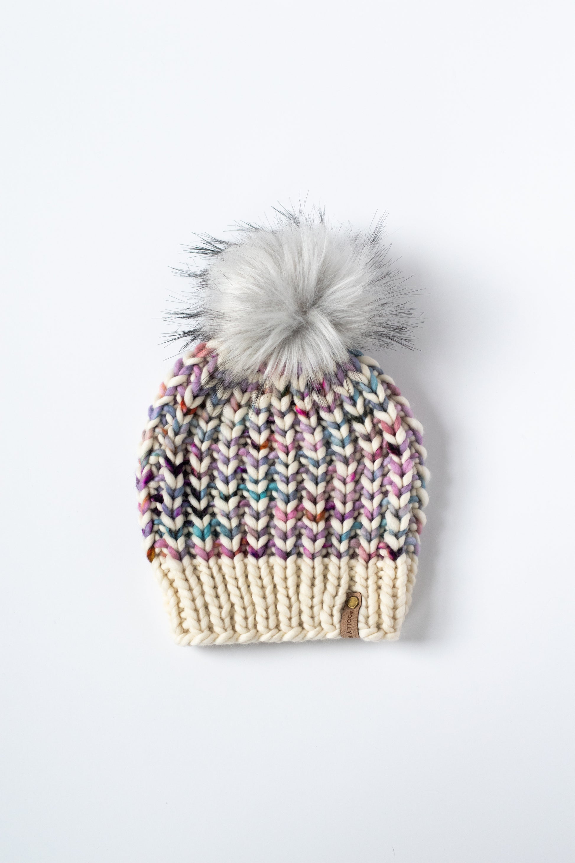 - Topped with a faux fur pom pom of your choice (select option at checkout). Pom poms are handmade by me using cruelty-free faux fur fabric.